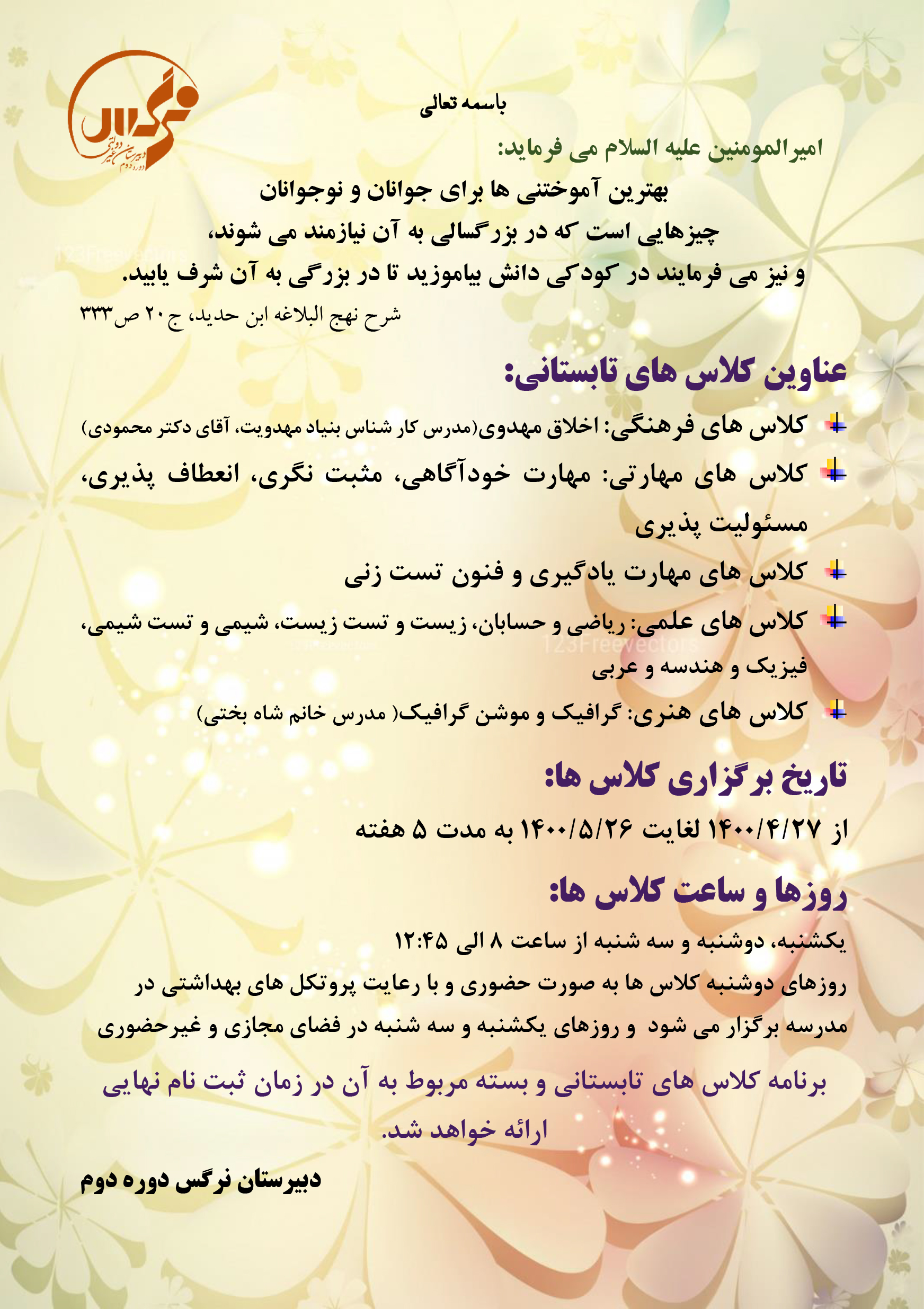 دوره دوم دبیرستان نرگس